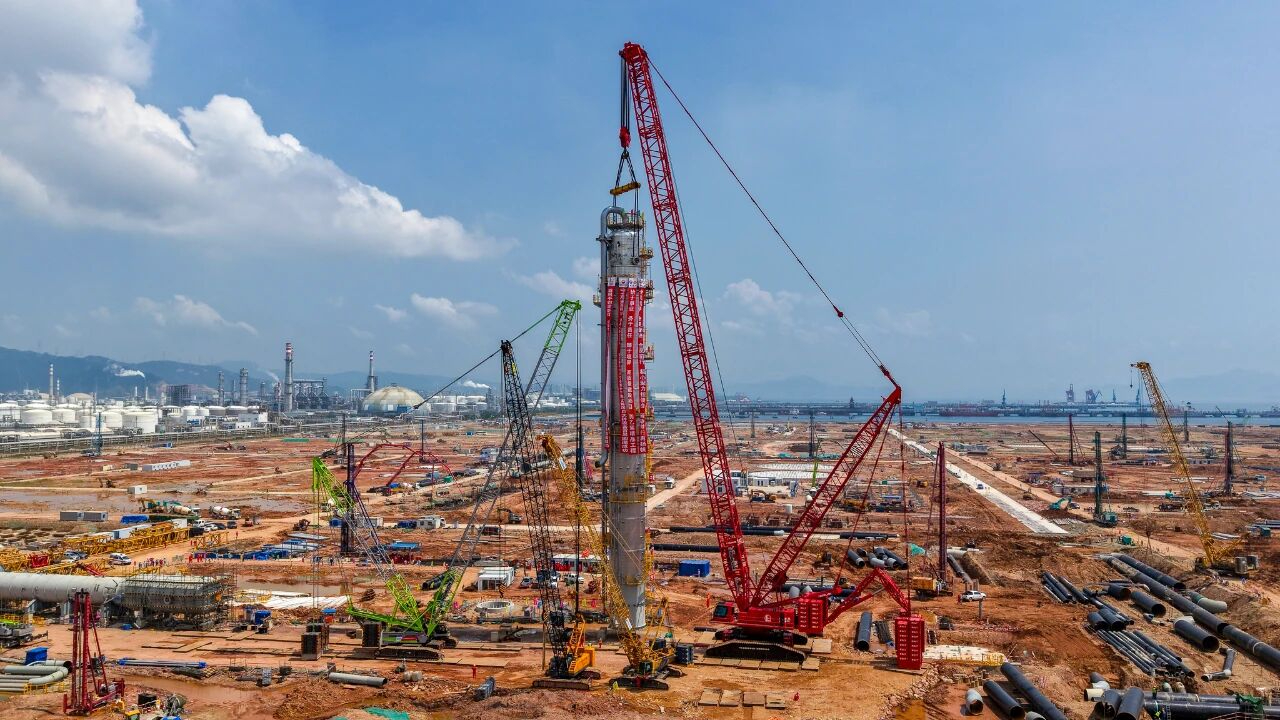 近日,中海壳牌三期乙烯项目乙烯装置碱洗塔启动吊装,标志着项目正式进入大件吊装阶段。