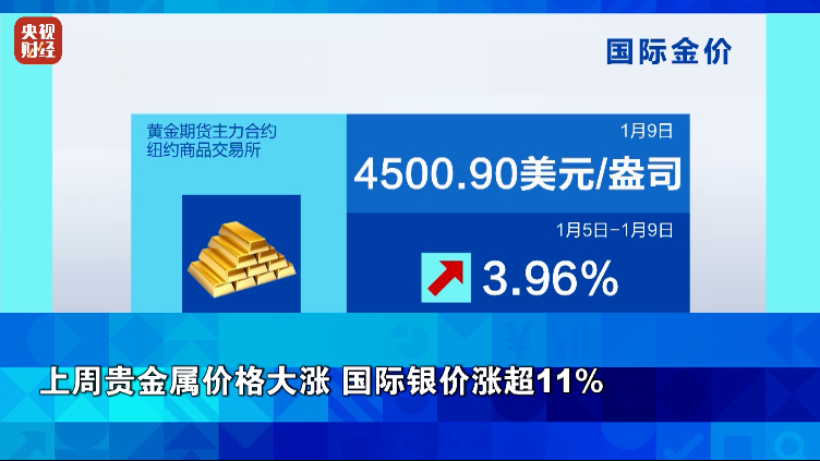 美国对委内瑞拉军事打击、地缘政治紧张局势引发市场对原油供应的担忧,国际油价上周显著上涨。此外,受持续的市场避险需求驱动,金银价格上周大涨,白银期货主力合约价格涨幅超过11%。